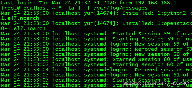 # tail -f /var/log/messages 另开窗口,可以看到动态安装信息