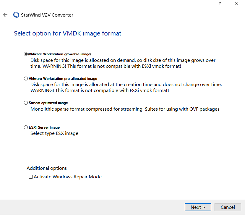 然后使用 StarWind V2V Converter 将img镜像转换为 vmdk磁盘文件